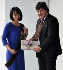 On 23rd March 2017 Yuyun Yang successfully defended her doctoral thesis in the field of bioactive and protective composite coatings on Mg substrates, which was carried out under the supervision of Professor Aldo R. Boccaccini at our Institute in close collaboration with Prof. Sanna Virtanen (Chair for Surface Science and Corrosion). In addition to Prof. Boccaccini and Prof. Virtanen, Prof. Wolfgang Goldmann (Biophysics Group, FAU), and Prof. Dirk Schubert (Institute for Polymer Materials, FAU), were the members of the doctoral defense committee. Prof. Boccaccini highlighted Yuyun’s challenging research project, the first comprehensive research effort in our institute focused on developing advanced coating systems for Mg substrates, which should exhibit functionalities such as bioactivity, antibacterial effect and corrosion protection, being relevant for a variety of biomedical applications in orthopedics and cardiovascular devices. Yuyun was recipient of a scholarship of the China Scholarship Council (CSC) and during the period of her doctoral studies she collaborated strongly with the research group of Prof. Virtanen. Yuyun received the 2015 Frans Habraken Best Paper Award of the journal Appl. Surf. Sci. for her paper: “In vitro study of polycaprolactone/bioactive glass composite coatings on corrosion and bioactivity of pure Mg” (Applied Surface Science, Volume 355, 2015, 832-841). Other papers resulting from Yuyun’s doctoral thesis are in advanced stage of preparation. We congratulate Yuyun on achieving her doctoral degree and wish her all the best in her future career.