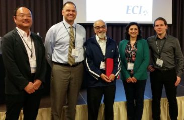 The 5th International Conference on Syntactic and Composite Foams was held in Siracusa, Italy, on March 26-31, 2017. Prof. Boccaccini acted as Co-Chair of the conference, which was sponsored by Engineering Conferences International (ECI). Dr. Liliana Liverani and Mr Lukas Gritsch (PhD student) attended the conference representing our Institute. Dr. Liverani presented the talks: “Keynote: Composite foams as tissue scaffolds: past, present and future”, and “Proteins as coating materials on bioactive glass-based composite foams”. Lukas Gritsch’s poster presentation was: “Antimicrobial chitosan foams as tissue engineering scaffolds”. In the picture Dr. Manabu Fukushima (Japan) (Co-Chair), Dr. Gary M. Gladysz (USA) (Chair), Prof. Krish Chawla (USA) (Co-Chair), Dr. Liliana Liverani (FAU), Lukas Gritsch (FAU).