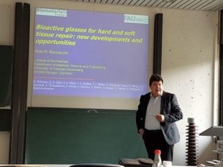 Dr. Kai Zheng and Prof. Aldo R. Boccaccini were speakers at the meeting of the Technical Committee I (FA-I) “Physics and Chemistry of Glasses” of the German Glass Society. The meeting was chaired by Prof. C. Rüssel, University of Jena, and it was held in Erlangen on 26th September 2017. The titles of the talks by Dr. Zheng and Prof. Boccaccini were, respectively,: “Synthesis of bioactive glass nanoparticles using sol-gel approaches” and “Bioactive glasses for hard and soft tissue repair: new developments and opportunities”.
