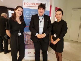 Prof. Aldo R. Boccaccini was one of the six plenary speakers at the 29th Symposium and Annual Meeting of the International Society for Ceramics in Medicine, ISCM, (Bioceramics 29), held in Toulouse, France, on 25-27 October 2017. He presented the plenary lecture: “Bioactive glasses in soft tissue repair: emerging evidence and research needs” discussing exciting new opportunities for applications of bioactive glasses in soft tissue repair and wound healing. Our Institute was also represented by Ms Abirami Sengottuvelan (PhD student), she presented the oral contribution: “Preparation and characterisation of titanium dioxide scaffolds developed via replication of natural marine sponge with PHBV-Chitosan and 1393 bioactive glass coatings for bone tissue engineering”. Prof. Boccaccini was also session chair at the conference and he met several colleagues (pictured with Prof. Boccaccini), including Prof. Toshiiro Kasuga (Nagoya Institute of Technology, Japan), Prof. Delia Brauer (University of Jena, Germany), Prof. Susmita Bose (Washington State University, USA), Prof. Julian R. Jones (Imperial College London, UK), Dr. Karolina Schickle (RWTH Aachen, Germany). Professor Boccaccini also discussed with Prof. Janis Locs (Riga Technical University, Latvia) the progress of the Horizon 2020 project “Baltic Biomaterials Centre of Excellence (BBCE)” in which our Institute is participating as international partner.