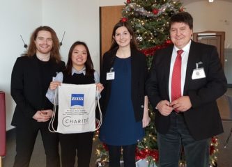Prof. Aldo R. Boccaccini was an invited speaker at the 8th Berlin-Brandenburg School of Regenerative Therapies (BSRT) symposium, which was held on 29th November to 1st December 2017 in Berlin. The symposium has been bestowed a superhero theme with the intention to unite scientists under the motto: RECOGNIZE, REPAIR, REGROW and PERSONALIZED BIOMEDICINE RISES. In the framework of this theme Boccaccini was Iron Man and he presented the talk: “Biomaterials to Support Regeneration”. Our Institute was also represented by Lukas Gritsch, Agata Lapa and Binh (Hana) Phan (pictured with Prof. Boccaccini), who presented results of their PhD projects being carried out in the framework of the EU Horizon 2020 funded ETN project HyMedPoly (“Drug-Free Antibacterial Hybrid Biopolymers for Medical Applications”). In the picture also Dr. Taimoor Qazi, former Master student of our Institute, currently at Charite Universitätsmedizin Berlin.