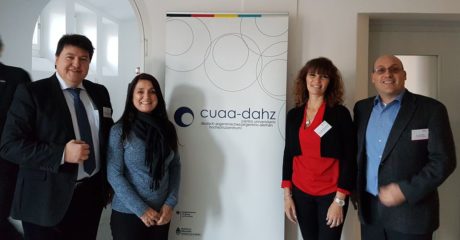 Prof. Aldo R. Boccaccini attended the kick-off meeting of the new I.DEAR projects, held at TU Dresden on 30 Nov. – 1st December 2017. I.DEAR (Ingenieur Deutschland-Argentina) is a program funded by the German-Argentinean University Centre (CUAA-DAHZ) to support the exchange of students, researchers and professors in the engineering field between Universities in Germany and Argentina. Under coordination of Prof. Boccaccini, the Department of Materials Science and Engineering of the University of Erlangen-Nuremberg participates since 2014 in an I.DEAR program in materials engineering together with University of Saarland and National University of Mar del Plata, Argentina. In the photos Prof. Silvia Simison (Mar del Plata), Prof. Maria Andrea Camerucci (Mar del Plata), Dr. Flavio Soldera (Saarbruecken), Dr. Daniel Zimmerman, Director of CUAA-DAHZ-Germany, Dr. Graciela Humbert-Lan, Director of CUAA-DAHZ-Argentina, Dr. Silvia Kroyer, Coordinator Network of Argentinean Scientists in Germany, Prof. Hugo Martinez, University of Cuyo, Argentina.