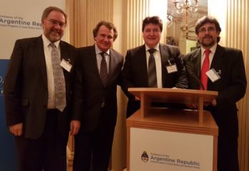 Prof. Aldo R. Boccaccini attended as invited speaker the launch of the Network of Argentinean Scientists in the United Kingdom which took place at a reception at the Embassy of Argentina in London on 14th December 2017, hosted by Ambassador R. Carlos Sersale di Cerisano and with the presence of scientific authorities of UK. Numerous Argentinean researchers living in UK attended the event, including both established and early career researchers. Prof. Aldo R. Boccaccini (Member of the Board of the Network of Argentinean Scientists in Germany, RCAA) was one of the invited speakers. He gave an introduction on the formation of Networks of Argentinean Scientists in different countries in the framework of the RAICES program of the Ministry of Science, Technology and Innovative Production of Argentina, in particular he summarized the experience with the launch of the Network of Argentinean Scientists in Germany, which was established in 2009. In the picture Prof. Robin Grimes (Imperial College London, UK), Ambassador R. Carlos Sersale di Cerisano, Prof. Aldo R. Boccaccini and Prof. Fernando Audebert (Univ. of Buenos Aires).