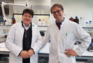 Professor Aldo R. Boccaccini visited the Department of Biomaterials, Radboud University Medical Center, Nijmegen, The Netherlands. Hosts were Dr. Sander Leeuwenburgh and Prof. John Jansen. The main aim of the visit was participating at the oral defense of the PhD thesis of Mr Mani Diba (pictured with Prof. Boccaccini), Mani is a graduate from the Master program MAP at FAU and collaborator of our Institute. He successfully defended his PhD thesis carried out at Radboud University Medical Center under supervision of Dr. Sander Leeuwenburgh and Prof. John Jansen in the field of composite biomaterials with self-healing properties. Our collaboration with Dr. Diba and the group of Dr Sander Leeuwenburgh (pictured) has led to high impact joint publications [1, 2]. During his visit, Prof. Boccaccini also gave a seminar at the Department of Biomaterials, Radboud UMC, entitled: “Bioactive glasses with biologically active ion delivery: development and applications”.