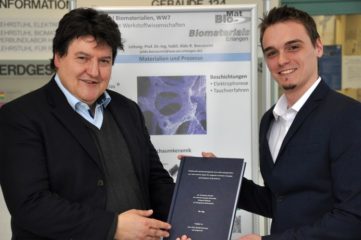 On 22th December 2017 Harald Unterweger successfully defended his doctoral thesis in the field of superparamagnetic iron oxide nanoparticles (SPION) for magnetic resonance imaging and magnetic drug delivery applications, which was carried out under the supervision of Professor Christoph Alexiou, Section of Experimental Oncology and Nanomedicine, University Hospital Erlangen and co-supervised by Professor Aldo R. Boccaccini. Several high impact publications have resulted from the doctoral thesis project of Harald Unterweger, some of them are listed below [1-3]. Harald had carried out both his Bachelor and Master Theses in Nanotechnology in our Institute. We congratulate Harald Unterweger on achieving his doctoral degree and wish him all the best in his future career.