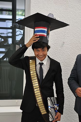 Supachai Reakasame (Boo) successfully defended his doctoral thesis on 30th August 2019 at the Institute of Biomaterials. He carried out his thesis (Dr.-Ing.) under academic supervision of Prof. Aldo R. Boccaccini, with a fellowship of the German Academic Exchange Service (DAAD). His project was in the field of Alginate-Gelatin-Based Hydrogels for Scaffold Development and Biofabrication in Tissue Engineering, which involved the development of a series of advanced processing strategies for expanding the applications of oxidized alginate-gelatin (ADA-GEL) hydrogels in tissue engineering. Prof. Wojciech Swieszkowski (Warsaw University of Technology, Poland), Prof. Bernhard Hensel (Department of Physics, FAU), Prof. Erik Bitzek (Chair for General Materials Science, FAU) and Prof. Boccaccini were the members of the examination board. Prof. Boccaccini commented on the outstanding research work carried out by Boo, highlighting that Boo had started his project four years ago, at the beginnng of our efforts in the field of biofabrication using the ADA-GEL bioink platform, and Boo`s research has contributed notably to our understanding of oxidized aliginate and ADA-GEL properties and their capability for cell encapsulation and 3D printing. Publications have already resulted from Boo’s research work [1, 2] and other papers are being finalised for publication. We congratulate Boo for achieving his Dr.-Ing. degree and wish him all the best in his future career. [1] S. Reakasame, A. R. Boccaccini, Oxidized Alginate-Based Hydrogels for Tissue Engineering Applications: A Review, Biomacromolecules 19 (2018) 13-21.[2] S. Reakasame, et al., Cell laden alginate-keratin based composite microcapsules containing bioactive glass for tissue engineering applications, J. Mater. Sci. Mater. Med. 29 (2018) 185.