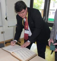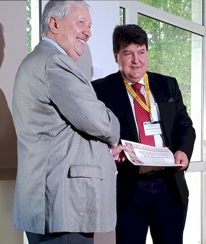 In the photos: Boccaccini receiving the Fellowship certificate from Mr. Stuart Hakes, SGT president, and signing the book of SGT fellows.