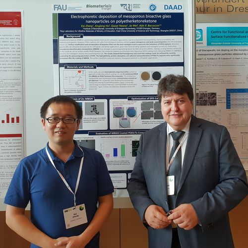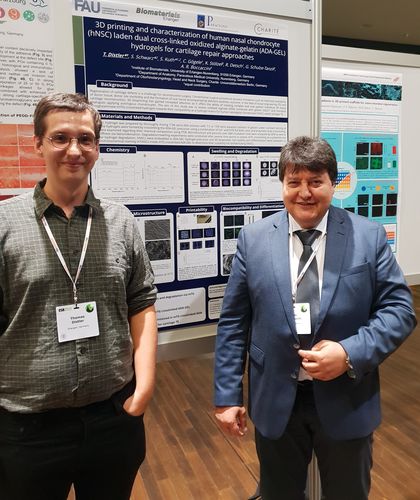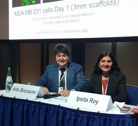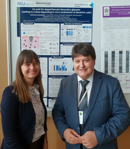 A large delegation of our Institute attended the 30th Annual Conference of the European Society for Biomaterials (ESB) held in conjuction with the 26th Annual Meeting of the German Society for Biomaterials (DGBM) in Dresden on 9-13 September 2019. Professor Boccaccini was a member of the Scientific Committee of ESB 2019 and organised two special symposia, namely ” Bioactive glasses: from the laboratory to the clinic”, together with Prof. Delia Brauer (Univ. of Jena) and “3D Structures in Tissue Engineering and Disease Modelling” together with Prof. Ipsita Roy (University of Sheffield, UK). Our contributions included 17 posters and 5 oral presentations. Ms Susanne Heid (PhD student) was among the winners of the “Best student poster award”. Participation of members of the Collaborative Research Centre SFB/TRR 225 “From the fundamentals of biofabrication towards functional tissue models” was also prominent, as well as the contributions from researchers collaborating with us within the “_Centre for Functional and Surface Functionalized Glass (FunGlass)”.