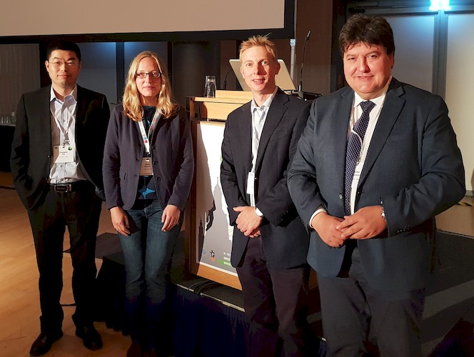 The Symposium “Bioactive glasses: from the laboratory to the clinic” co-organised by Prof. Aldo R. Boccaccini and Prof. Delia Brauer (University of Jena) was held in the framework of the “30th Annual Conference of the European Society for Biomaterials” (ESB 2019). Keynote speakers were Prof. Julian Jones (Imperial College London) and Prof. Nina Lindford (Helsinki University Hospital). There were two contributed presentations, from Prof. Jonathan Massera (Tampere University) and Dr Si Chen (University of Trencin) (all pictured with Prof. Boccaccini). The symposium was organised to mark the 50 year anniversary of bioactive glass, invented by the late Prof. Larry Hench (University of Florida, USA) in 1969. At ESB 2019 also a meeting of four editors of the journal “Biomedical Glasses” took place (Profs. Chengtie Wu, Shanghai Institute of Ceramics, Julian Jones, Delia Brauer and Aldo R. Boccaccini).