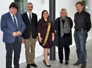 Laura Ramos Rivera successfully defended her doctoral thesis on 30th October 2019 at the Institute of Biomaterials. Laura carried out her thesis (Dr.-Ing.) under academic supervision of Prof. Aldo R. Boccaccini, with a fellowship of the German Academic Exchange Service (DAAD) <https://www.daad.de/de/> and COLCIENCIAS, the Colombian Research Agency. Her project was in the field of Electrophoretic deposition (EPD) of zein-bioactive glass composite coatings exhibiting bioactivity and antibacterial effects, which involved adapting the EPD technique to produce robust coatings of the vegetal protein zein, as an alternative biocompatible material for biomedical coatings. Prof. Sanna Virtanen (FAU Institute of Surface Science and Corrosion), Prof. Oliver Friedrich (FAU Institute of Medical Biotechnology), Prof. Dominique DeLigny (Chair for Glass and Ceramics, FAU) and Prof. Boccaccini were the members of the examination board. Prof. Boccaccini commented on the innovative research work carried out by Laura, highlighting that she also started the combination of EPD and electrospinning (two methods available in our Institute) to advance the fabrication of biomedical coatings with suitable topography and bioactivity. Laura`s research has resulted in publications [1, 2] and other papers are being finalized for publication. We congratulate Laura for achieving her Dr.-Ing. degree and wish her all the best in her future career.