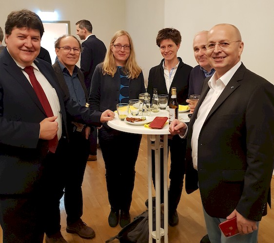 Prof. Aldo R. Boccaccini was an invited speaker at the Colloquium held on 14th November 2019 to mark the 25th Anniversary of the Chair of Materials Science (CMS), Otto Schott Institute for Materials Research, Friedrich-Schiller University of Jena. Prof. Boccaccini followed an invitation of the Head of the CMS, Prof. Klaus D. Jandt and presented the lecture: “Bioactive materials and biofabrication for tissue engineering; advances and challenges”. Prof. Boccaccini also remembered in his talk his mentor and PhD supervisor, Prof. Gerhard Ondracek (1934-1995), who was the first holder of the CMS at University of Jena. In the photos Prof. Boccaccini with Dr. Izabela Firkowska-Boden (CMS, Univ. of Jena), invited speaker, Prof. Klaus Jandt, Prof. Delia Brauer, and other participants at the colloquium.