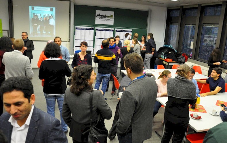 The “10 Year Anniversary” International Symposium to celebrate the 10 years of the Institute of Biomaterials was held on 29th November 2019 at University of Erlangen-Nuremberg (FAU). More than 120 participants attended the symposium, which featured a high quality scientific program of international invited speakers, all of them collaborators of the Institute, coming from many countries, such as Italy, Spain, UK, USA, Poland, France, Thailand, Malaysia, Finland, Austria, Portugal, Switzerland and Germany. Particularly significant was the participation of numerous alumni of the Institute. The symposium was opened by Prof. Guenter Leugering, Vice-president for Research, FAU, and Prof. Aldo R. Boccaccini, Head of Institute of Biomaterials. In his introduction, Boccaccini highlighted the achievements of the Institute since its establishment in October 2009, including the publication of more than 500 research papers, many in collaboration with research groups worldwide, acquisition of substantial extramural funding and the high number of Bachelor and Master students who have completed their theses at the Institute (more than 350). He also remarked that 31 doctoral theses have been completed and more than 150 visiting students and researchers have carried out research at the Institute since 2009. Boccaccini acknowledged also the support of FAU regarding the new building with generous laboratory space and modern facilities for biomaterials and cell biology research, which became available to the Institute in 2016. Several video messages from alumni from around the world were projected. The symposium included also the round table discussion „Biomaterials: Challenges for the Future“ with active contribution of the participants and moderated by FAU colleagues (Prof. O. Friedrich, Prof. Ben Fabry). The celebration finalized with a dinner attended by more than 100 guests, including alumini, friends and collaborators, in addition to the current members of the Institute. We thank everyone who came to Erlangen for our Anniversary celebration !