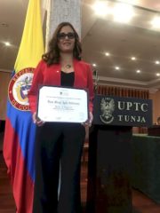 We congratulate Diana Ayala Valderrama who completed her PhD studies at Pedagogical and Technological University of Colombia, Departament Boyacá, Colombia, under supervision of Prof. Jairo Alberto Gomez Cuaspud. Prof. Aldo R. Boccaccini was the co-supervisor of the thesis, entitled: “Design of glass-ceramic prototypes, from the reuse of slag, fly ash and glass hull, generated in the industrial processes of the department of Boyacá”. The graduation ceremony was on December 11, 2019. Diana spent 8 months at the Institite of Biomaterials in 2018. The results of the thesis have led to one publication [1] and other papers are in preparation. We congratulate Diana and wish her much success in her future career.