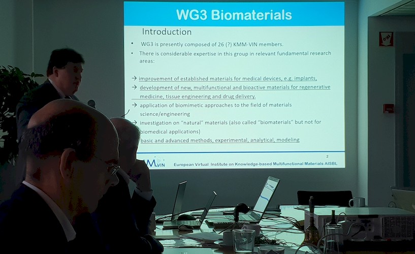 Prof. Aldo R. Boccaccini attended the General Assembly Meeting of the European Virtual Institute on Knowledge-based Multifunctional Materials (KMM-VIN ), held on 25th February 2020 in Brussels. Prof. Boccaccini is the coordinator of the Working Group Biomaterials (together with Prof. C. Hellmich, Technical University of Vienna, Austria) and he is a founding member of KMM-VIN (established in 2010). KMM-VIN offers integrated basic and applied research, educational and innovation activities in the field of knowledge-based multifunctional materials. The aim of KMM-VIN is to foster the creation of a powerful platform for research and development and industrial application of advanced multifunctional materials in order that Europe may become a global power in this field, thus contributing to enhancing the quality of life of European society. In the photos, Prof. Boccaccini with Prof. M. Basista, Institute of Fundamental Technological Research (IPPT), Warsaw, Poland, and CEO of KMM-VIN, and with Prof. Federico Smeacetto of Polytechnic of Turin, , Italy.