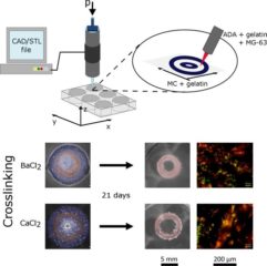 Our publication (short communication) entitled “Cell-laden alginate dialdehyde–gelatin hydrogels formed in 3D printed sacrificial gel”has been published in J. Mater. Sci. Mater. Med. The research presented in this paper was carried out in the context of the doctoral thesis of Dr. Supachai Reakasame (Boo), the Master thesis of Ms Dalia Dranseikiene, and in collaboration with the research group of Prof. Dirk Schubert (Institute of Polymer Materials, FAU) with support of the Collaborative Research Centre TRR/SFB 225 “From the fundamentals of biofabrication towards functional tissue models”. In this work, ring shaped constructs of ADA–GEL hydrogel were fabricated by casting the hydrogel into sacrificial molds, which were previously 3D printed from methylcellulose 5% gelatin. The effect of different crosslinkers (Ba2+ and Ca2+) on the physicochemical properties of the hydrogel and on the behavior of encapsulated cells was investigated. The approach introduced in this paper could be further developed for cell-laden ADA–GEL bioink printing into complex 3D structures.