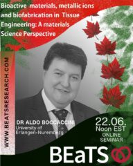 On Monday 22nd June, Prof. Aldo R. Boccaccini delivered an invited lecture in the framework of the BioEngineering and Therapeutic Solutions (BEaTS) Seminar series, Ottawa Heart Institute, University of Ottawa, Canada. The seminar was hosted by Prof. Emilio I. Alarcon, Principal Investigator and Laboratory Director, University of Ottawa Heart Institute. The presentation was entitled: “Bioactive materials, metallic ions and biofabrication in tissue engineering: a materials science perspective”.
