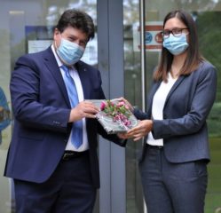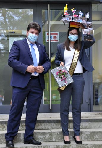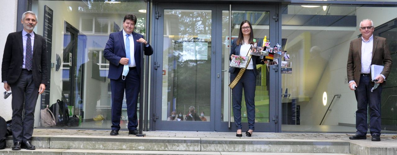 We congratulate Katharina Schuhladen, who successfully defended her doctoral thesis entitled “Development of multifunctional wound dressings by using newly designed ion-doped borosilicate and borate bioactive glasses” on 30th September 2020. She carried out her doctoral project in our Institute supervised by Prof. Aldo R. Boccaccini. The examination board was composed by Prof. Valeria Cannillo (University of Modena and Reggio-Emilia, Italy), Prof. Wolfgang Goldmann (Department of Physics, FAU), Prof. Dominique De Ligny (Institute for Glass and Ceramics, FAU) and Prof. Boccaccini.Prof. Boccaccini highlighted the outstanding research work carried out by Katharina, covering many scientific and technology fields, from bioactive glasses and composite materials to phytotherapeutic agents, immunological response and antibacterial properties of biomaterials for wound healing applications. Indeed the work of Katharina led to the development and characterization of novel bioactive glass containing biodegradable composites enriched by the presence of Manuka honey as potent phytotherapeutic agent to achieve synergistic effects with biologically active ions. Several papers and book chapters have already been published from the results of her thesis (for example [1-3]).Many congratulations to Katharina for her doctorate degree and we wish her all the best in her future career.