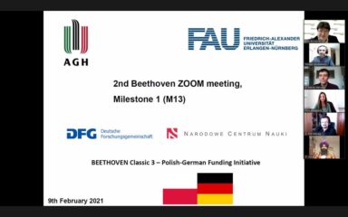 The latest progress meeting our international project: “Development of electrophoretic co-deposition of bioactive and antibacterial ceramics with biodegradable polymers to produce novel composite coatings for biomedical applications” was held remotely on 9th February 2021. The project has received funding from the German Science Foundation (DFG) and the National Science Centre (NCN) (Poland). The project is led by Prof. Tomasz Moskalewicz, Faculty of Metals Engineering and Industrial Computer Science, AGH University of Science and Technology, and Prof. Aldo R. Boccaccini. The objective of the project is to develop and characterize novel composite coatings exhibiting bioactive and antibacterial functionalities for orthopedic and dental applications employing electrophoretic deposition (EPD). In addition to Prof. Boccaccini, Ms Zoya Hadzhieva and Mr Ranjot Virk (PhD students) attended the meeting representing the Institute of Biomaterials. There have been already papers published in the framework of this project [1,2].