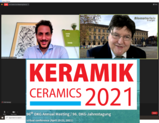 Prof. Aldo R. Boccaccini was the co-organiser TOPIC 08 “Ceramics for Healthcare”, with Prof. Kurosch Rezwan (University of Bremen) (pictured) and Prof. Anne Leriche (University of Valenciennes, France) and co-chaired the respective sessions in the framework of the CERAMICS 2021 conference, the 96th Annual Meeting of the German Ceramic Society (DKG), which was held online on April 19-21, 2021. There were two oral presentations by members of our Institute, Qaisar Nawaz (PhD student) presented the talk: “Synthesis, evolution of crystallization kinetics and biological performance of sol-gel derived 13-93 bioactive glass”, while Marcela Arango (PhD student) gave the talk: “In vitro bioactivity of silicon oxycarbide-based bioactive glasses modified with Ca and Zn for bone regeneration”.