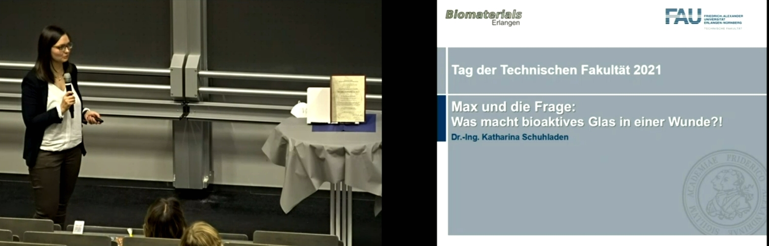 Many congratulations to Dr. Katharina Schuhladen, who carried our her doctoral thesis at the FAU Institute of Biomaterials under supervision of Prof. Aldo R. Boccaccini. On 19th November, she received the best doctoral thesis award at the “Day of the Faculty of Engineering 2021“. The thesis is entitled: “Development of multifunctional wound dressings by using newly designed ion-doped borosilicate and borate bioactive glasses”. Katharina defended her thesis in September 2020.