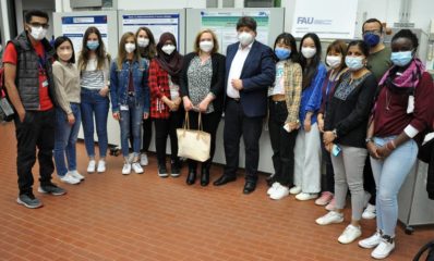 On 1st July 2022, our Institute participated at the event organised at the University of Erlangen-Nuremberg, Department of Materials Science and Engineering, to celebrate the United Nations International Year of Glass 2022. The event was organised by Prof. D. De Ligny (Chair for Glass and Ceramics) (pictured with Prof. Boccaccini) and attracted a wide audience from inside and outside the University. Dr. Judith Roether, affiliated with the FAU Chair for Polymer Materials and visiting researcher at the Institute of Biomaterials, presented the talk “Glass in the body: from bone implants to wound healing”. Our Institute had also a stand demonstrating the applications of glass in medicine.