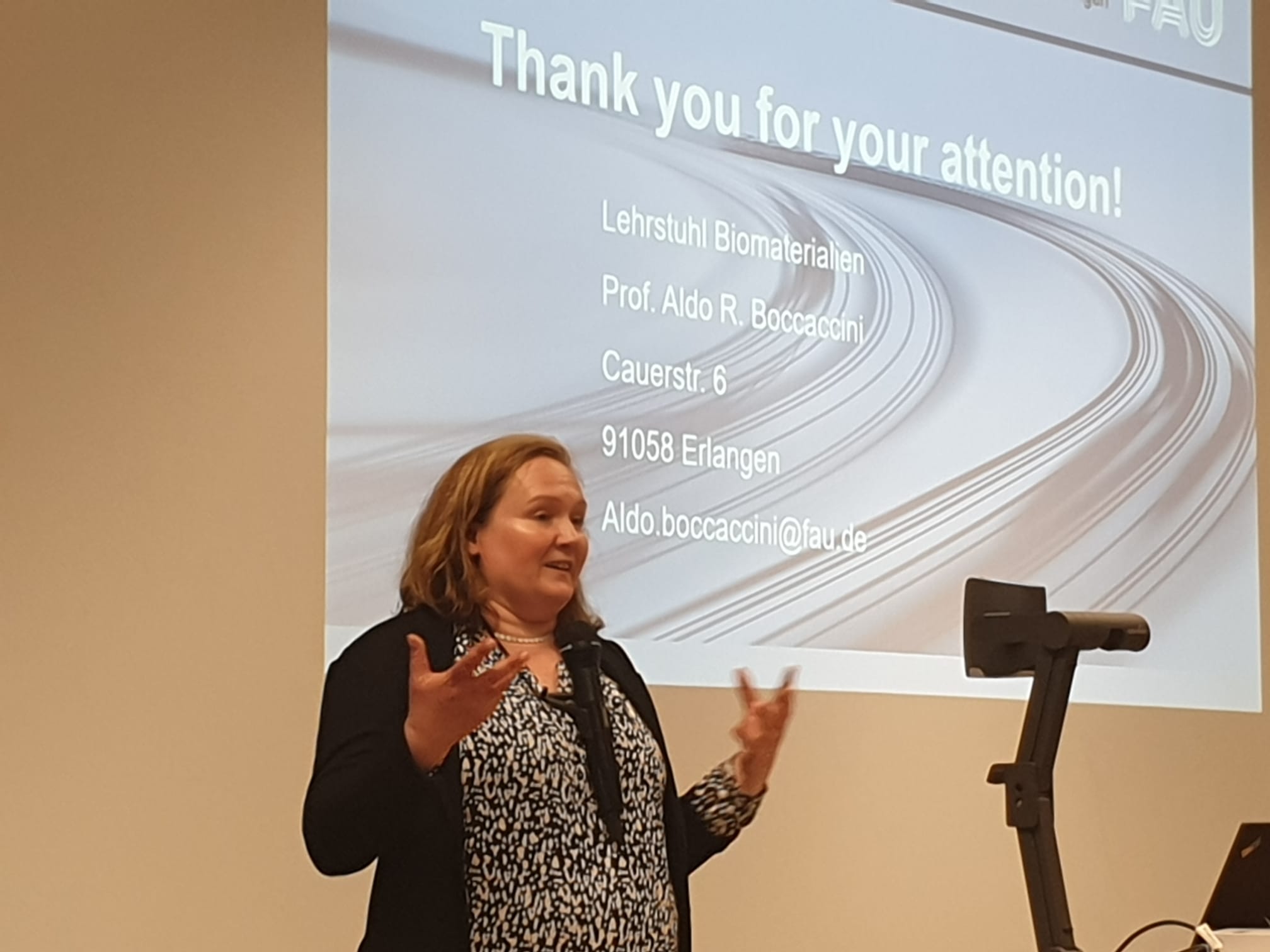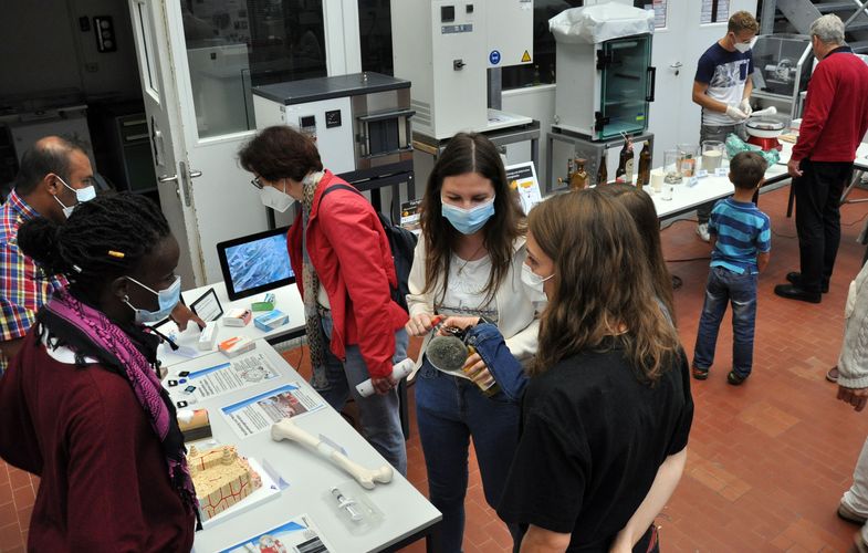 On 1st July 2022, our Institute participated at the event organised at the University of Erlangen-Nuremberg, Department of Materials Science and Engineering, to celebrate the United Nations International Year of Glass 2022. The event was organised by Prof. D. De Ligny (Chair for Glass and Ceramics) (pictured with Prof. Boccaccini) and attracted a wide audience from inside and outside the University. Dr. Judith Roether, affiliated with the FAU Chair for Polymer Materials and visiting researcher at the Institute of Biomaterials, presented the talk “Glass in the body: from bone implants to wound healing”. Our Institute had also a stand demonstrating the applications of glass in medicine.