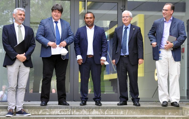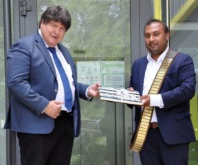 We congratulate Qaisar Nawaz for successfully defending her doctoral thesis titled “Multifunctional SiO2-CaO based mesoporous bioactive glasses with therapeutic ion and biomolecule releasing capability” on 21st July 2022. He carried out his doctoral project in our Institute supervised by Prof. Aldo R. Boccaccini in the framework of a DFG funded project collaborating with Prof. Delia Brauer (Univ. of Jena) and Dr. Araceli de Pablos-Martín (at the time at Fraunhofer Institute for Microstructure of Materials and Systems (IMWS), group Nanomaterials and Nanoanalytics, Halle). The examination board was composed by Prof. Antonio Salinas (Complutense University of Madrid, Spain), Prof. Martin Hartmann (CBI Department, FAU), Prof. Dominique De Ligny (Institute for Glass and Ceramics, FAU) and Prof. Boccaccini. Prof. Boccaccini highlighted the very comprehensive research project carried out by Qaisar which led to a wide range of results on the development and application of Mn-dopped mesoporous bioactive glass nanoparticles. He also mentioned the innovative aspect of the thesis, showing icariin as an effective phytotherapeutic agent that can be combined with bioactive glasses to enhance the biological performance of scaffolds. Qaisar is a graduate of the MAP program at FAU. Several papers have been published from Qaisar’s project (for example [1-2]). Many congratulations to Qaisar for the successful defense of his doctoral thesis, we wish him all the best in his future career.