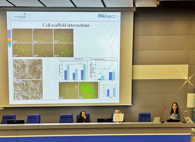 Dr. Farnaz Ghorbani, currently Alexander von Humboldt Postdoctoral fellow in our Institute, participated in the “1st Baltic symposium on Polymer and (Bio)Materials Science (Baltic BioMat)” held on 22-23 September 2022 at West Pomeranian University of Technology, Szczecin, Poland, which was chaired by Prof. Miroslawa el Fray from the Division of Functional Materials and Biomaterials, Faculty of Chemical Technology and Engineering, Szczecin University of Technology. The theme of the symposium “From Materials Design to Advanced Structures” focused on the most recent achievements in polymer and biomaterial design, as well as materials engineering approaches towards the control of structure and performance. Dr. Ghorbani delivered an oral presentation titled: “Polydopamine functionalized electroconductive gelatin-PEDOT:PSS matrices for bone regeneration”.