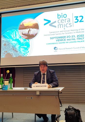 Prof. Aldo R. Boccaccini was a plenary speaker at the 32nd Symposium and Annual Meeting of the International Society for Ceramics in Medicine (ISCM) (BIoceramics 32) which took place in Venice, Italy, on 20-23 September 2022. Prof. Boccaccini presented the plenary talk: “Bioactive glasses releasing multiple biologically active ions for regenerative medicine”, he also chaired the session “Bioceramics for soft tissue applications and skin care”.