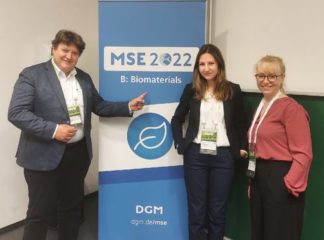 Our Institute had an active contribution to the success of the Materials Science and Engineering MSE Congress (MSE 2022) held in Darmstadt, Germany, and in hybrid format on 27 – 29 September 2022, a DGM (German Materials Society) conference. Prof. Boccaccini was a coordinator of the Topic “Biomaterials” with Prof. Corneila Lee-Thedieck, University Hannover. He also organised the symposium “Biomaterials Applications” with Prof. Sahar Salehi (Bayreuth) and Prof. Xanthippi Chatzistavrou (Greece), and he was the chair of several sessions during the conference. He also chaired the plenary session in which Prof. Daniel Cohn (Israel) presented the biomaterials related plenary talk. Ms Sonja Kuth, PhD student, presented the oral contribution: “Optimization of material parameters of an oxidized hyaluronic acid based bioink for soft tissue engineering”. Moreover, Ms Zoya Hadzhieva, PhD student, won the Best Poster Award (topic Biomaterials) for her poster, co-authored with Prof. Aldo R. Boccaccini titled: “Fabrication and characterization of multicomponent coatings on titanium for biomedical applications”.