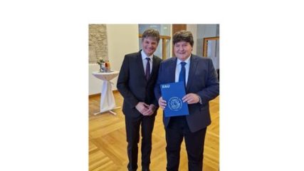 On 27th Jan., Prof. Aldo R. Boccaccini attended the ceremony hosted by FAU President Prof. Joachim Hornegger (pictured with Prof. Boccaccini), to mark 25 years of public service in Germany. The event took place in the FAU Castle (headquaters of the University) with participation of many FAU colleagues who marked 40 or 25 years of public service. Before joining FAU as Professor and Head of the Institute of Biomaterials in 2009, the career of Prof. Boccaccini in Germany included stages at RWTH Aachen and TU Ilmenau while he had spent other periods of his career in Argentina, UK and USA. Prof. Boccaccini said: “Despite the many years spent abroad, in Argentina, UK and USA, I am happy to mark a quarter of a century of public service in Germany. Looking forward to several more years of academic activities at FAU!”.