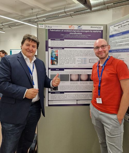 Our Institute had a strong show at the Annual Meeting 2023 of the _German Society for Biomaterials (DGBM), which was held on 14-16 September 2023 in Jena. Prof. Boccaccini chaired the session “Antimicrobials and Translation″, Dr. Rainer Detsch chaired the session “Additive Manufacturing” and presented an oral contribution (Tailored hydrogels as a platform technology for various biomedical applications: What is required to create an alginate-based bioink library?) in the session “Biofabrication”, which was endorsed by the Collaborative Research Centre TRR 225. Moreover PhD students Hsuan-Heng Lu, Jonas Roeder and Memoona Akthar presented posters and short presentations. We congratulate Dr Irem Unalan, who received the Best Doctoral Thesis Award 2023 of DGBM for her thesis carried out in the field of essential releasing engineered scaffolds, supervised by Professor Boccaccini.