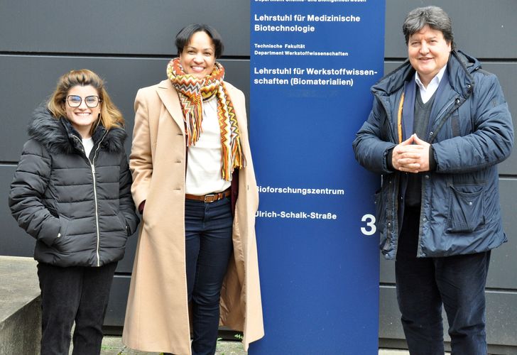 On 12th March, Prof. Dr. Anayancy Osorio Madrazo, Professorship for Organ Printing at University of Bayreuth, and Ms Shaghayegh Jahangir, PhD student, visited the Institute of Biomaterials. Hosted by Prof. Aldo R. Boccaccini, Professor Osorio Madrazo presented the lecture: “Bioinspired fiber/hydrogel biomaterials and their 3D printing for tissue engineering” in the framework of the seminar series of the Collaborative Research Centre (CRC) TRR 225 “From the fundamentals of biofabrication towards functional tissue models”. Prof. Osorio Madrazo and Ms Jahangir visited the laboratories of the Institute of Biomaterials and discussed with Prof. Boccaccini and Dr. R. Detsch collaborations in the field of biopolymers, biofabrication and tissue engineering activities.