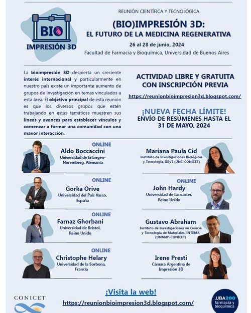 On 27th June 2024, Prof. Aldo R. Boccaccini presented the plenary talk “Bioactive Glasses Meet 3D Bioprinting: Progress and Challenges” at the Symposium “3D (Bio)printing: The future of regenerative medicine”, organised at the Faculty of Pharmacy and Biochemistry, National University of Buenos Aires (UBA) Buenos Aires, Argentina. Prof. Martín Desimone (UBA) was the organiser of the event, which took place in presence and online with participants from Argentina and Europe.