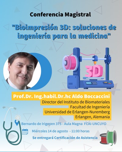 On 14th August 2024, Prof. Aldo R. Boccaccini presented an invited plenary talk at Faculty of Applied Sciences in Industry (FCAI) at National University of Cuyo (UNCUYO), San Rafael, Argentina.
