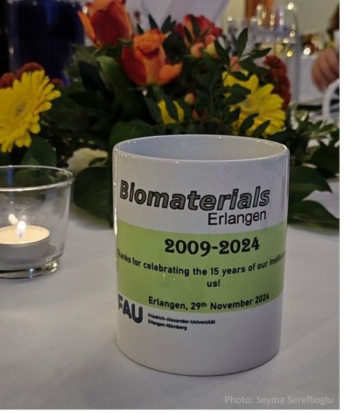 The international symposium to celebrate the 15 years of the Institute of Biomaterials took place on 29th November 2024 at in the Department of Materials Science and Engineering, FAU, hosted by Prof. Aldo R. Boccaccini, Head of the Institute of Biomaterials at FAU. The scientific part of the symposium included as invited speakers: Prof. Ipsita Roy (University of Sheffield), Dr. Irem Unalan (Institute of Biomaterials, FAU), PD Dr. Fabian Westhauser (University Hospital Heidelberg) and Prof. Andreas Arkudas (University Hospital Erlangen). Prof. Mathias Goeken, Head of the Department of Materials Science and Engineering at FAU gave a welcome address. The session was moderated by Dr. Zoya Hadzhieva and Ms Marcela Arango-Ospina, PhD student. The second part of the symposium included short presentations by alumni of our Institute, who participated in presence and online, as mentioned in the program. The event finished with a social dinner. More than 80 people, current and formed members of the Institute, attended the symposium and more than 40 alumni and formed members connected online, mainly based in different countries such as Thailand, Egypt, Turkey, Japan, Argentina, the Netherlands, UK, Greece, Mexico and Brazil.