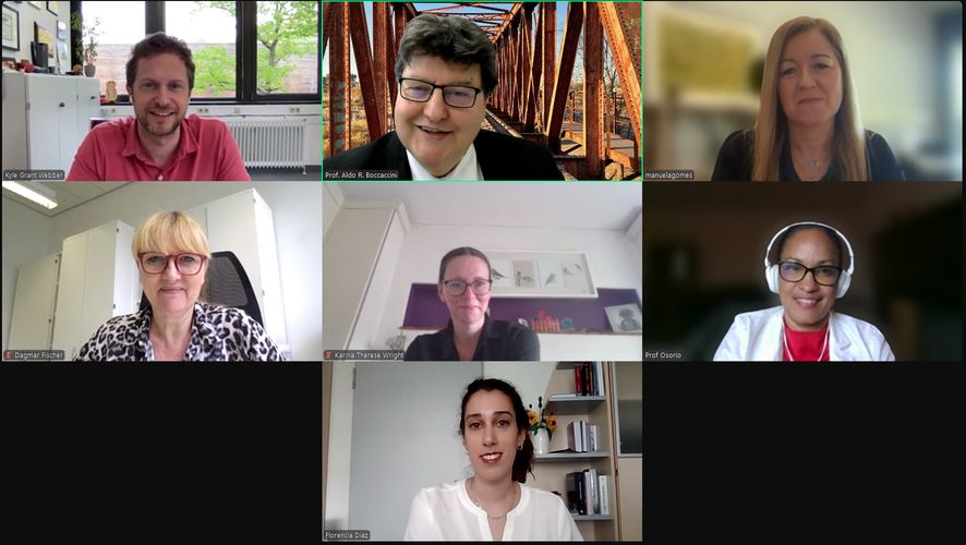 The defense was conducted online and the members of the doctoral defense committee were: Prof. Kyle Webber (Department of Mater. Sci. and Engineering, FAU), Prof. Karina Wright (Keele University, UK), Prof. Manuela Gomes (University of Porto, Portugal), Prof. Dagmar Fischer (Department of Chemistry and Pharmacy, FAU), Prof. Anayancy Osorio Madrazo (University of Bayreuth) and Prof. Boccaccini. Prof. Boccaccini highlighted the innovative results obtained by Florencia, who developed and characterised novel 3D scaffolds with ordered porosity based on chitosan, gelatine and cellulose as additive for rotator cuff tendon repair. The project involved research at Keele University and other partner universities in P4FiT. Several papers have been already published resulting from Florencia’s thesis [1,2].