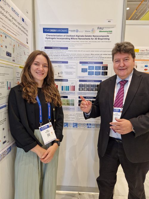 Lisa Schöbel presented a poster featuring results from her doctoral thesis project on electrically conductive hydrogels for cartilage repair, conducted within the DFG-funded Collaborative Research CenterSFB 1270 ELAINE (LINK) in cooperation with Prof.Hermann Seitz and colleagues at the University of Rostock. It was also an opportunity to meet former members and visitors of our Institute (for example Prof. Duygu Ege, Turkey).