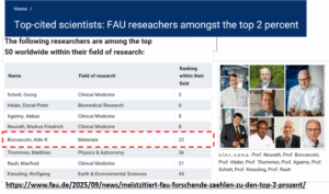 Information in the FAU webpage: https://www.fau.eu/2025/09/news/meistzitiert-fau-forschende-zaehlen-zu-den-top-2-prozent/