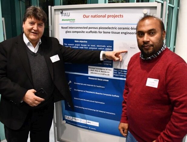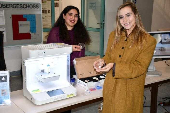 On 24th October 2025, our Institute participated actively at the Long Night of the Sciences in Erlangen. We presented a stand demonstrating 3D printing technologies for biomedical applications. In particular, we showed the advances of 3D printing of polymer biomaterials. Implants and scaffolds of different strengths can be produced with the help of 3D printing. Soft materials such as cosmetic creme can be used as model ink to print 3D structures. In actual applications, hydrogels loaded with cells (bioinks) are used for biofabrication of tissue-like structures, which is part of our research activities in the framework of the DFG-funded Collaborative Research Centre SFB/TRR 225. We also presented posters of our currrent EU funded projects NanoBloc, BBCE, EngViPO and our DFG funded projects SFB/CRC 1270 (ELAINE), SFB/CRC 1540 Exploring Brain Mechanics (EBM) and FOR 5657 „BIOAntiFatigue”. We thank everyone who contributed to the success of our stand, specially our PhD students team coordinated by Lisa Schöbel and Dr. Julia Will and the great technical support of Mr Heinz Mahler.