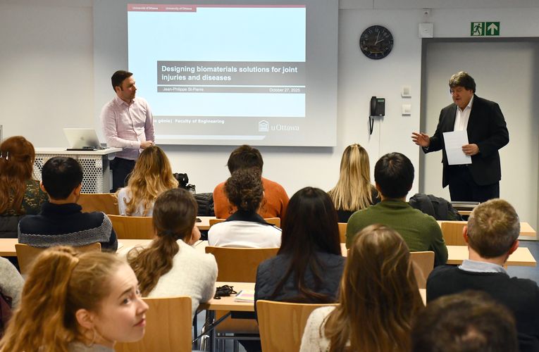 On 27th November 2025, our Institute hosted the “Advances in Biomaterials 2025” Seminar featuring two invited, international speakers: Prof. Jean-Philippe St-Pierre (University of Ottawa, Canada, currently visiting the FAU Department of Biology), and Prof. Ana Paula Immich Boemo (Federal University of Santa Caterina, Brazil), currently visiting researcher in our Institute as part of our CAPES-DAAD joint research project. They presented insightful talks showing biomaterials innovations in two key areas of tissue engineering, namely cartilage repair and wound healing, respectively. The seminar was chaired by Prof. Aldo R. Boccaccini who highlighted the exciting possibilities for collaboration in the frame of international exchange programs between Germany and Canada and Brazil.
