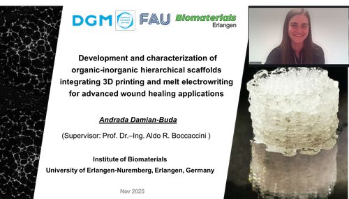 We congratulate Andrada-Ioana Damian-Buda, PhD student in our Institute, on winning the Master Thesis Lecture Competition organized by the German Society for Materials Science (DGM) (LINK: https://dgm.de/de/home ) as part of the FEMS – Federation of European Materials Societies (LINK: https://fems.org/ ) “European Materials Day 2025”. Andrada presented a talk showcasing the results of her Master’s thesis carried out at our institute. As the first-place winner, she will attend the FEMS Junior Euromat 2026 (LINK: https://fems.org/junior-euromat-2026/ ) conference in Greece next year and will present her work in the European Master Thesis Lecture Competition as the DGM representative.