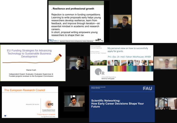 The Institute of Biomaterials successfully organized a workshop on “Project Writing and Project Partner Search,” held on 16–18 December, as part of its training activities for researchers based at the Baltic Biomaterials Center of Excellence (BBCE) in Riga, Latvia. The workshop was conducted within the framework of an EU-funded Horizon 2020 project (grant agreement No. 857287) and was organized in a hybrid format, coordinated by Marcela Arango and Dr. Zoya Hadzhieva. The first session was held online and featured invited speakers from academia and industry. Prof. Aldo R. Boccaccini opened the event, followed by presentations from Dr. Fabian Westhauser (Regensburg University Medical Center), Mr. Rainer Kuth (Independent Expert and Advisor to the European Commission), Prof. Alessandro Del Vecchio (FAU), and Prof. Peter Felfer (FAU), who shared their experience in project writing and networking. The final two days of the workshop took place in presence in Riga and focused on gaining practical experience in writing successful research grant proposals.