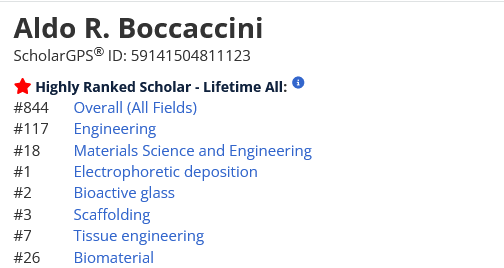 Prof. Boccaccini in the Highly Ranked Scholars™ list of ScholarGPS®