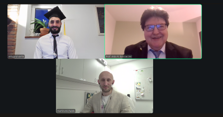 Congratulations to Ertugrul Varlik on successfully defending his doctoral thesis titled “ADVANCED MANUFACTURING OF 3D SCAFFOLDS USING BIOACTIVE GLASS FOR BONE TISSUE ENGINEERING APPLICATIONS” on 12th February, 2026. Ertugrul carried out his doctoral research at FunGlass – Centre for Functional and Surface Functionalized Glass, University of Trenčín, Slovakia, under the supervision of Dr. Martin Michalek, in co-tutelle with Prof. Aldo R. Boccaccini at FAU. Prof. Boccaccini highlighted the innovative character of Ertugrul’s project in the field of 3D additive manufacturing on boron containing bioactive glass scaffolds for bone regeneration, in particular, the achievement of a dual biological effect in terms of bioactivity and antibacterial effect in scaffolds with controlled crystallinity. Several papers have already resulted from Ertugrul’s project [1, 2] and and other manuscripts are in preparation. Many congratulations to Ertugrul on the successful defense of his doctoral thesis, we wish him all the best in his future career.