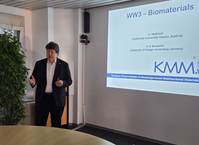 Prof. Aldo R. Boccaccini attended the General Assembly Meeting of the European Virtual Institute on Knowledge-based Multifunctional Materials (KMM-VIN), which was held on 25th February 2026 in Brussels. Prof. Boccaccini is a founding member of KMM-VIN and he has been the coordinator of the Working Group Biomaterials (WG3) (together with Prof. C. Hellmich, Technical University of Vienna, Austria) since the establishment of the network in 2007. Prof. Boccaccini attended also the meeting of the Governing Council of KMM-VIN held on the same day and he chaired the meeting of the Working Group Biomaterials on 26th February 2026. KMM-VIN is a European initiative that offers integrated basic and applied research, educational and innovation activities in the field of knowledge-based multifunctional materials. The aim of KMM-VIN is to foster the creation of a platform for research and development and industrial application of advanced multifunctional materials, thus contributing to enhancing the quality of life of European society. In the photos, Prof. Boccaccini with the members of the WG3 Biomaterials who gave presentations at the WG3 meeting.